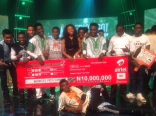 A two-man dance group, 'Robots for Christ' are the winners of the second edition of 'Nigeria’s Got Talent' show! The grand finale of the talent show which held today, Sat.Feb.02, 2014 saw the impressive pair crowned as winners after weeks of rehearsals and tense performances, beating nine other finalists.