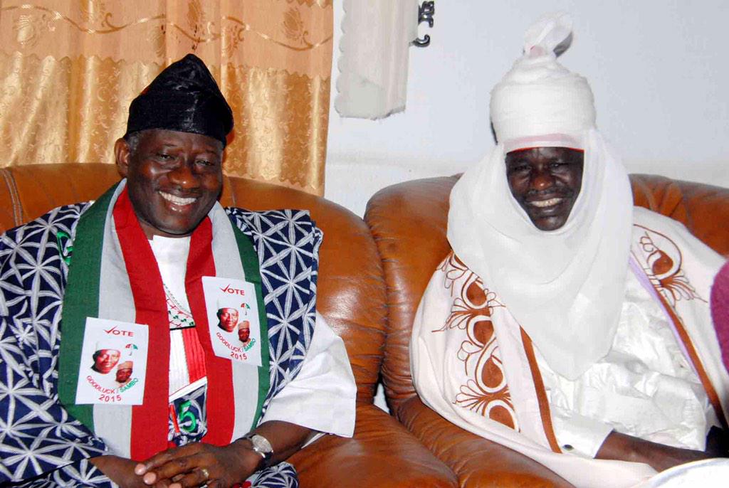 President Jonathan with the Emir of Muri in Jalingo today.